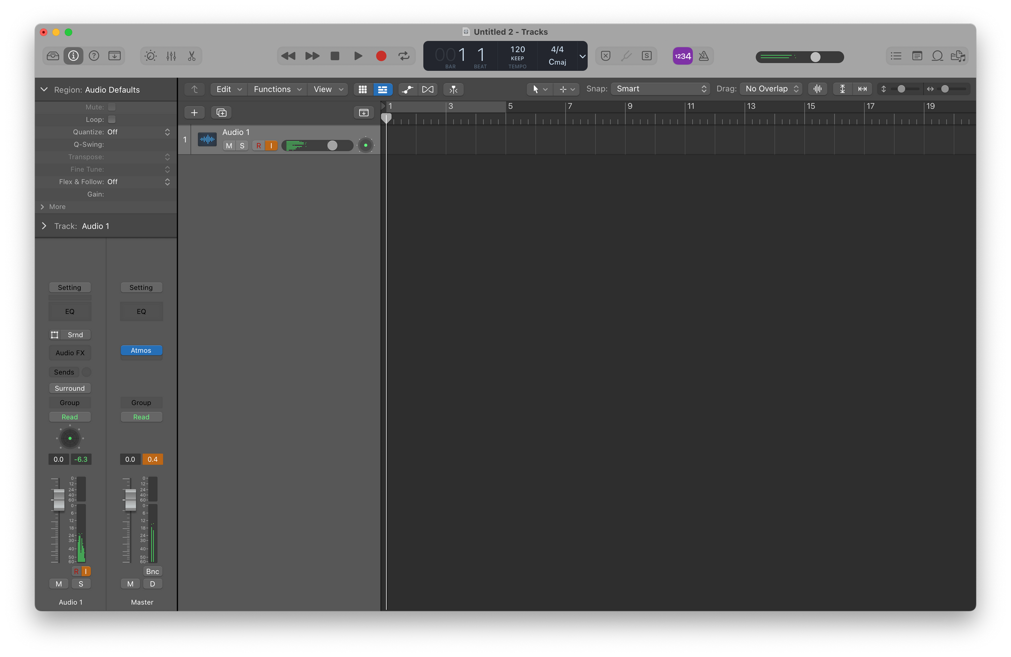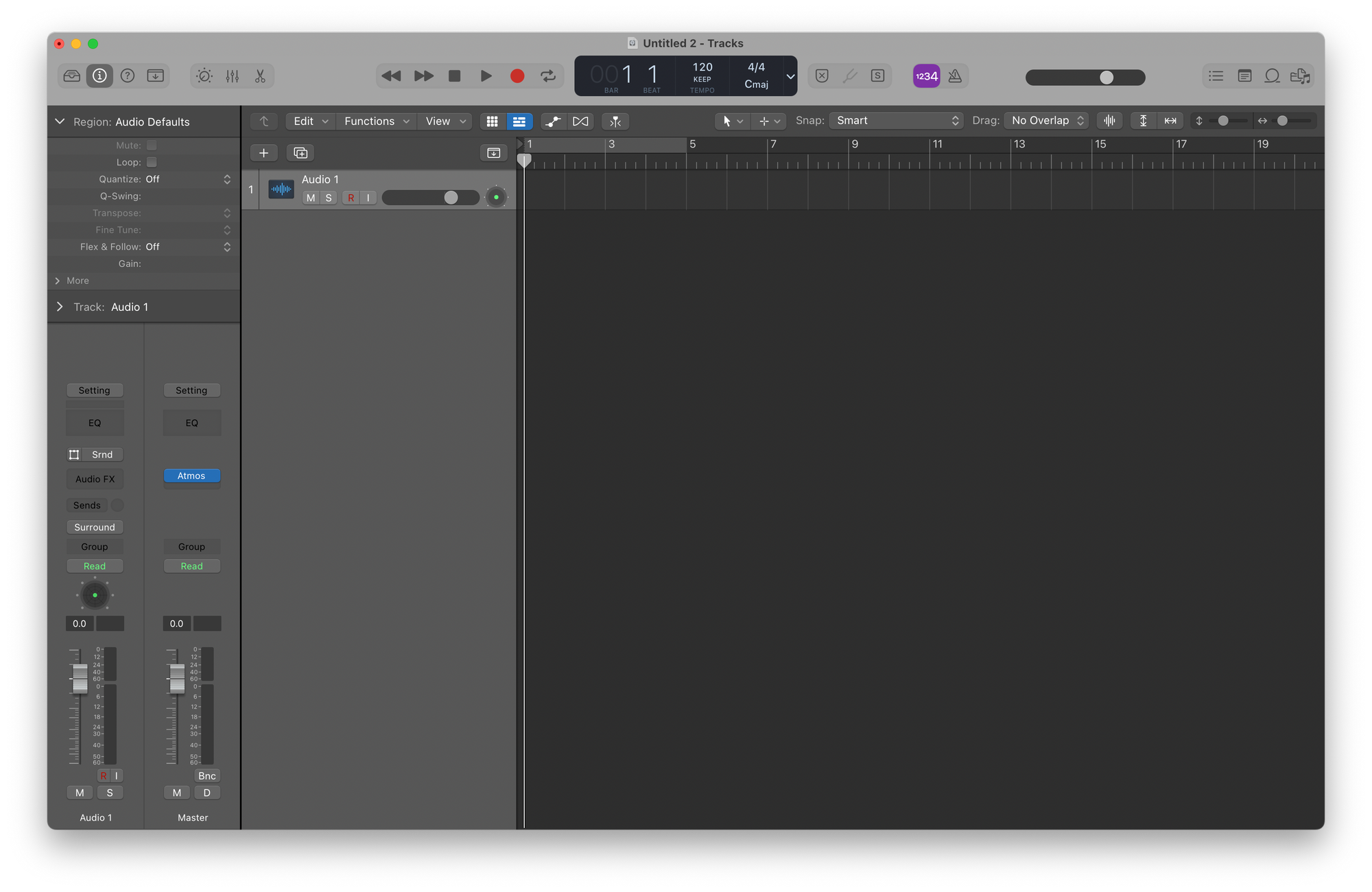 進到 app 畫面,注意 Master 的 Audio FX 區已經有一個 Atmos plug-in 啟用了。